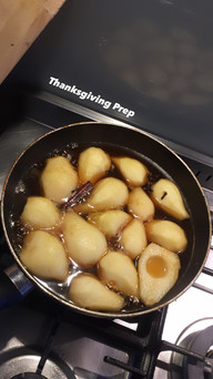 My dad grew a lot of pumpkins this year so the appetizers will be Butternut Squash Toast. This will allow guests to have something to snack on while I finish the main of Turkey, Mashed Potatoes, Spinach & Beans, Orange Carrots, House Rolls. Then when you think you haven't had enough: two desserts. Apple Cobbler, because I am trying to re-create the heavenly experience from St. John's and Poached Pear with ice-cream, because we got a lot of pears this year in the garden, and mom wants to use them up.